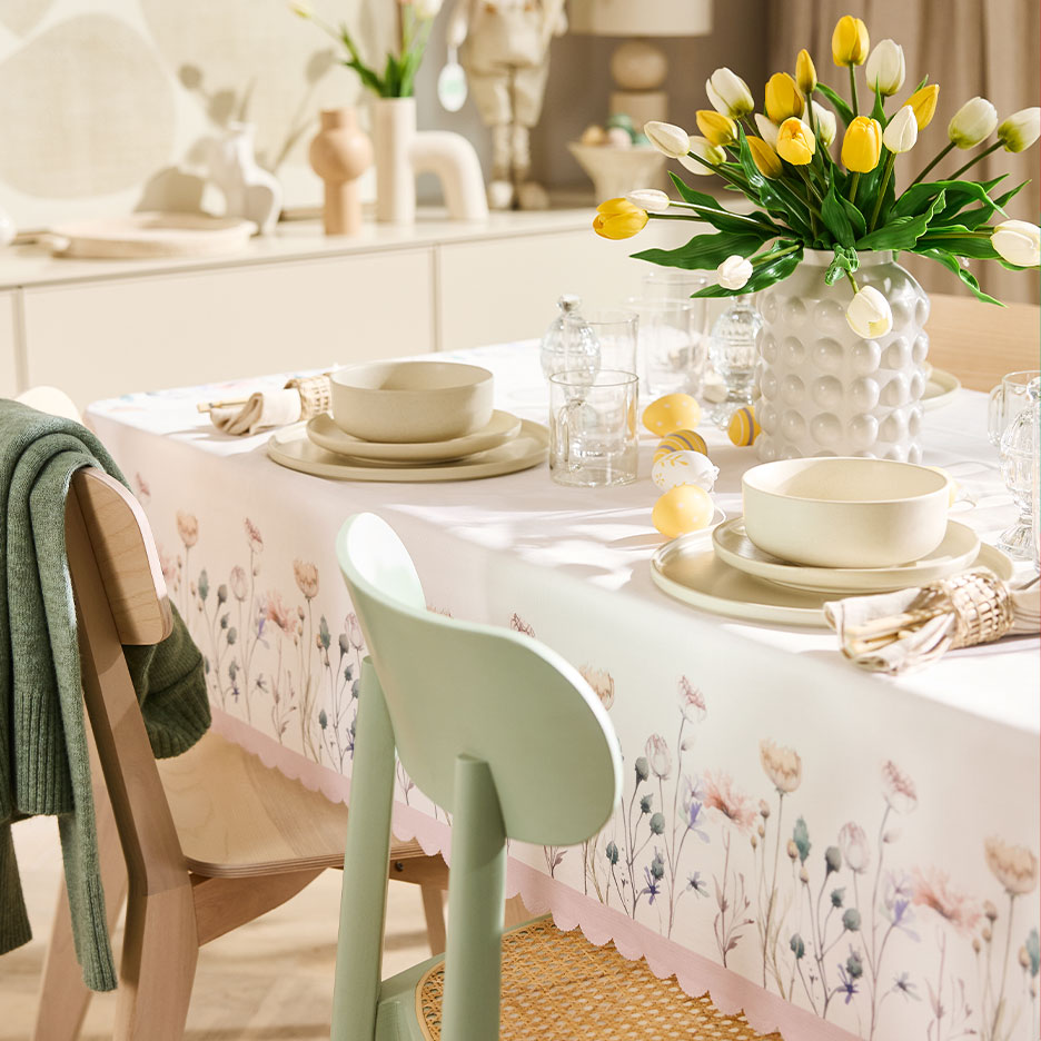 - Pastelinės spalvos ant stalo? Jums nereikės dėti jokių pastangų – Velykų nuotaika ateis pati! Jums tereikia pastelinės staltiesės, pavasario gėlių, pavyzdžiui, tulpių ar narcizų, ir žavių Velykų zuikučių. Nėra laiko aplankyti floristo? Dirbtinės tulpių puokštės su tikroviško prisilietimo efektu atrodo kaip gyvos!